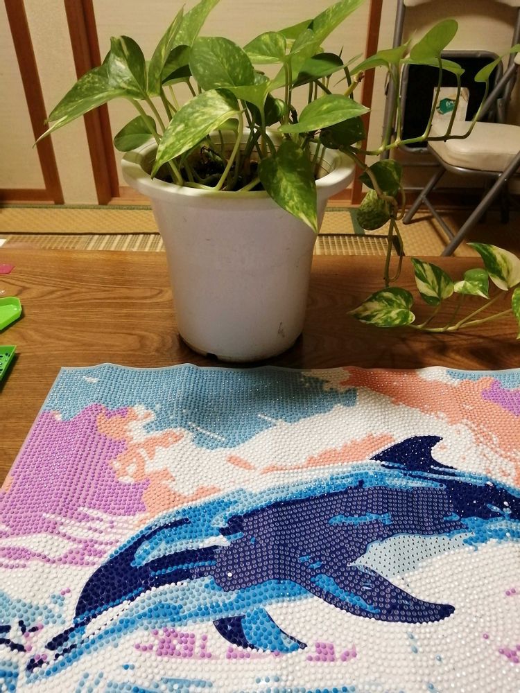 この間ダイソー行った時イルカのビーズアート見ました❗️超大作のは3種類あったかな!これ5時間ずつやっても3日以上かかりますね😆