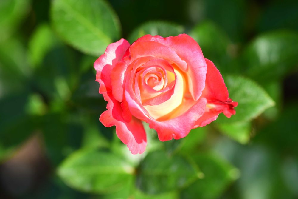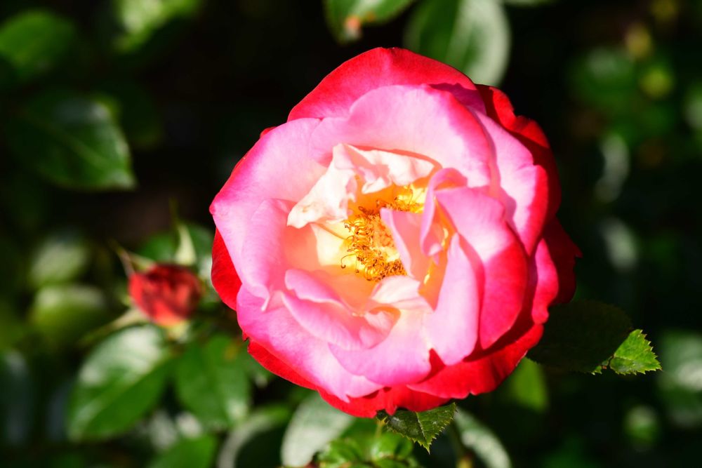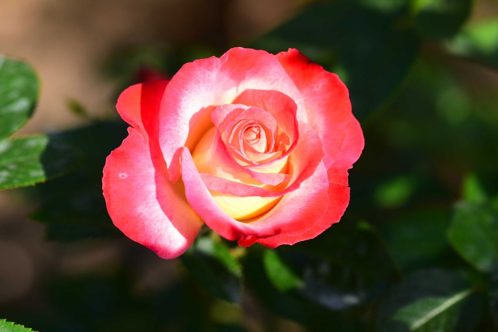 クリーム黄と弁先に赤の覆輪の優雅なバラ