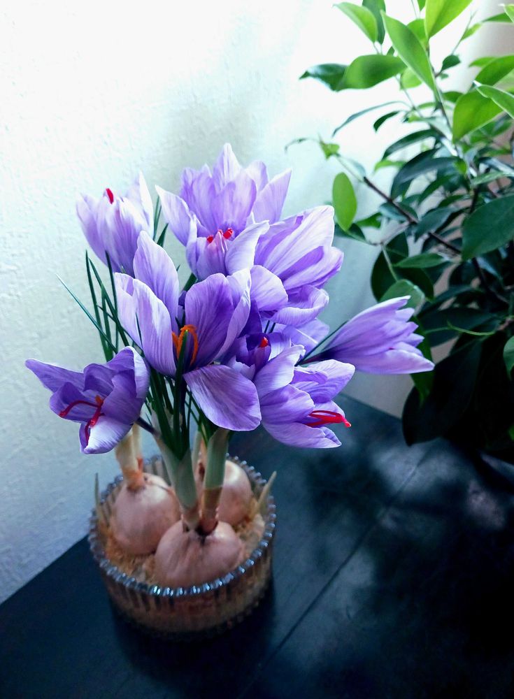 サフランは最初は日陰の涼しいところに置いてました。ヒヤシンスは最初から暖かいところに置くと失敗するので、同じかなぁ🤔なんて思ったんです。