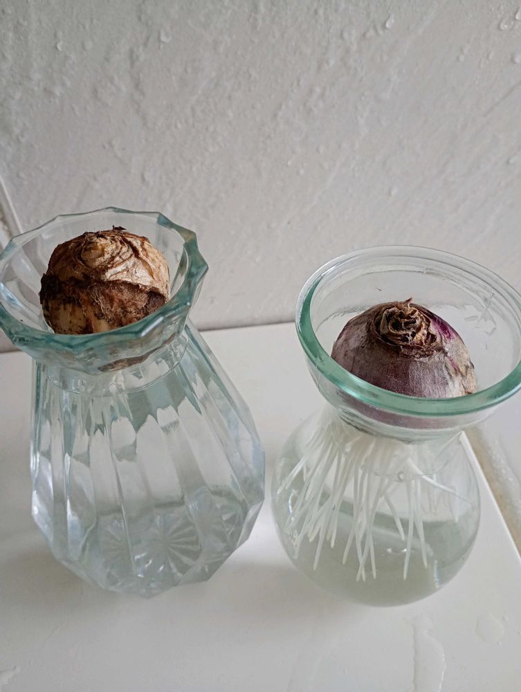 私は実は一個だけですが水耕栽培しょうと思ったんですが、ネットで見たらする前の一カ月前に冷蔵庫で球根を冷やすとあり、慌てて、冷やしています。