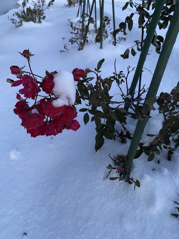 ①〜③先日雪が積もり、ネットを掛ける前のバラ達です。