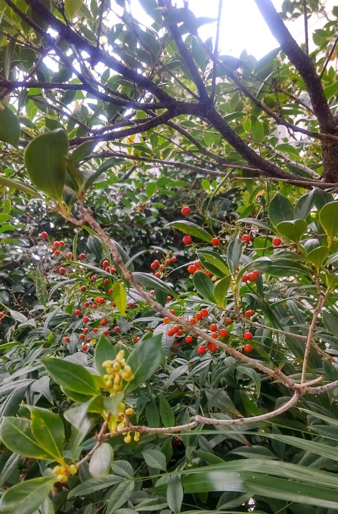 普通のことですが例年🐦️に食べられてる我が家では珍しいのです。冬鳥は帰って来てるのに蜜のあるサザンカの開花がまだでね。手前は柊の蕾