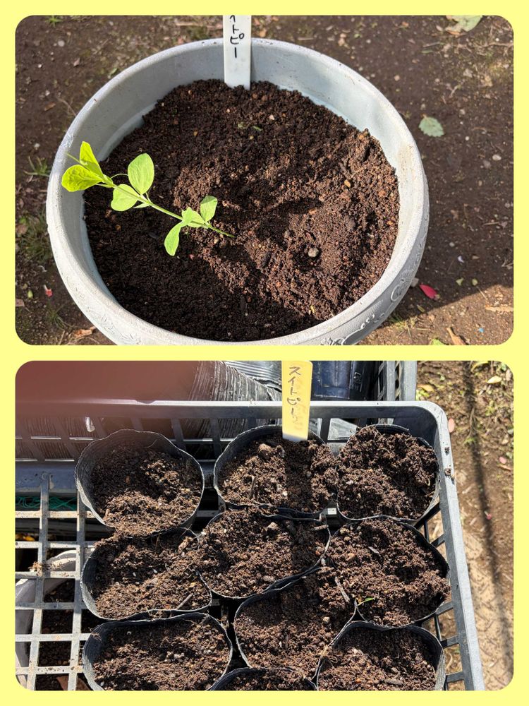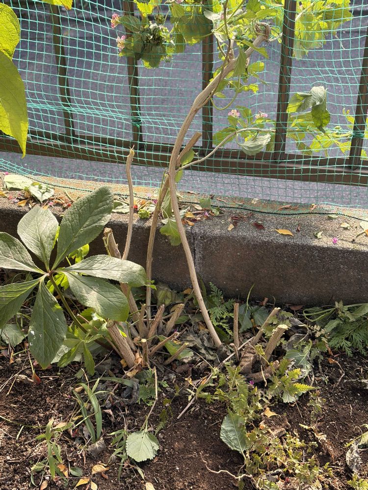 おはようございます。晴れ、10.9℃、10:50寒い。皇帝ダリア、青空に咲いてます、高さを測ったら4.67mでした。ランタナ、咲いてますが寒くなってきたので剪定しました。紫陽花、花芽を残して整枝、剪定、レモンバームはすべて切り取りました。スイトピー3世、1本しか発芽しなかったので苗植えし、再度種蒔きしました。🥰😻😍😸☺️😋
