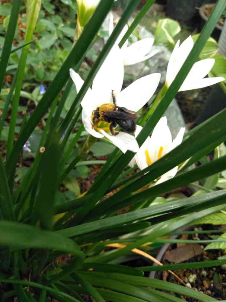 庭を歩いていると、何かいる!怖いもの見たさに近づいたら…タマスダレの花びらをがっしりつかんで、蜜を吸っている………