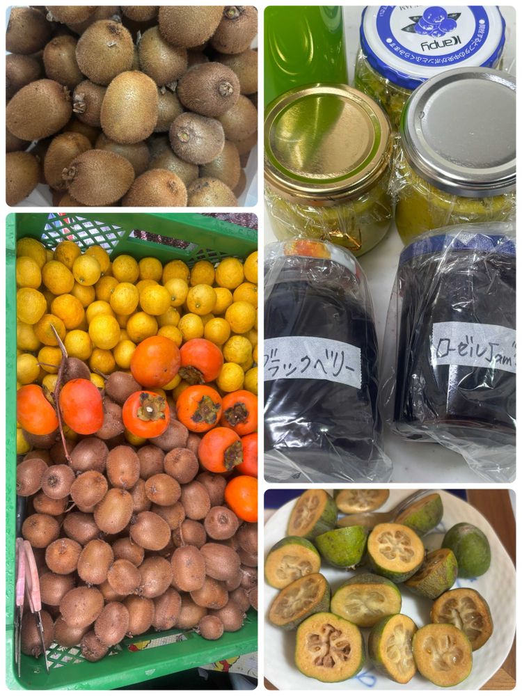 散歩道のおばちゃんが沢山🫐をくれる方なんですよ。今年の🥝は小さかったです。花柚子も小さくて皮が剥き辛かったです。これだけでずいぶん時間が掛かりました。友達はお昼の用意もありますし😅