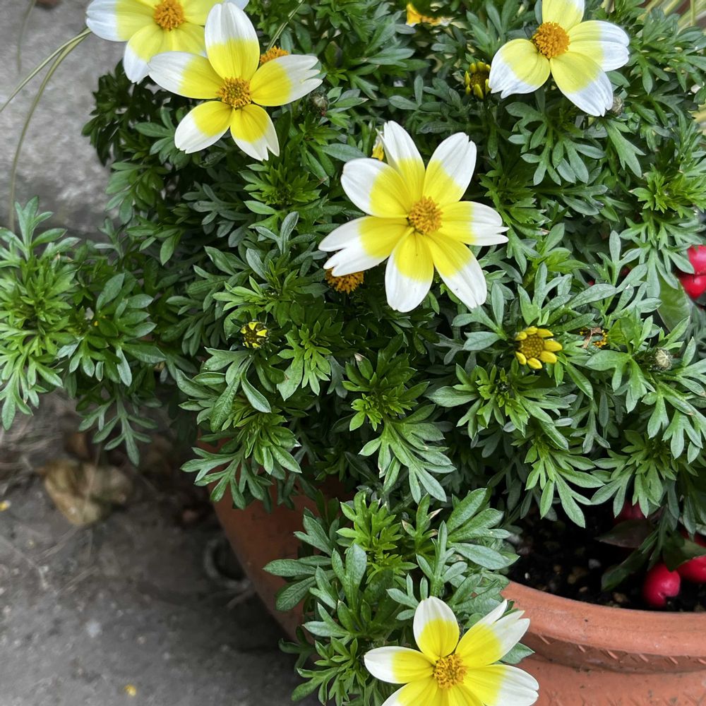 10月終わりに寄せ植えをした時は、蕾ばかりのビデンスをお迎えして植え付けました