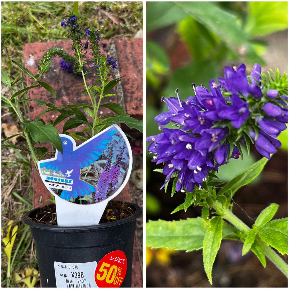 ベロニカは作った花壇に植えたくてHCをじっくりじっくり見て回ってももう時期を外してしまったのか全然見当たらず、見切り品コーナーに行ってみると、なんと半額で2ポット🫢あったのです