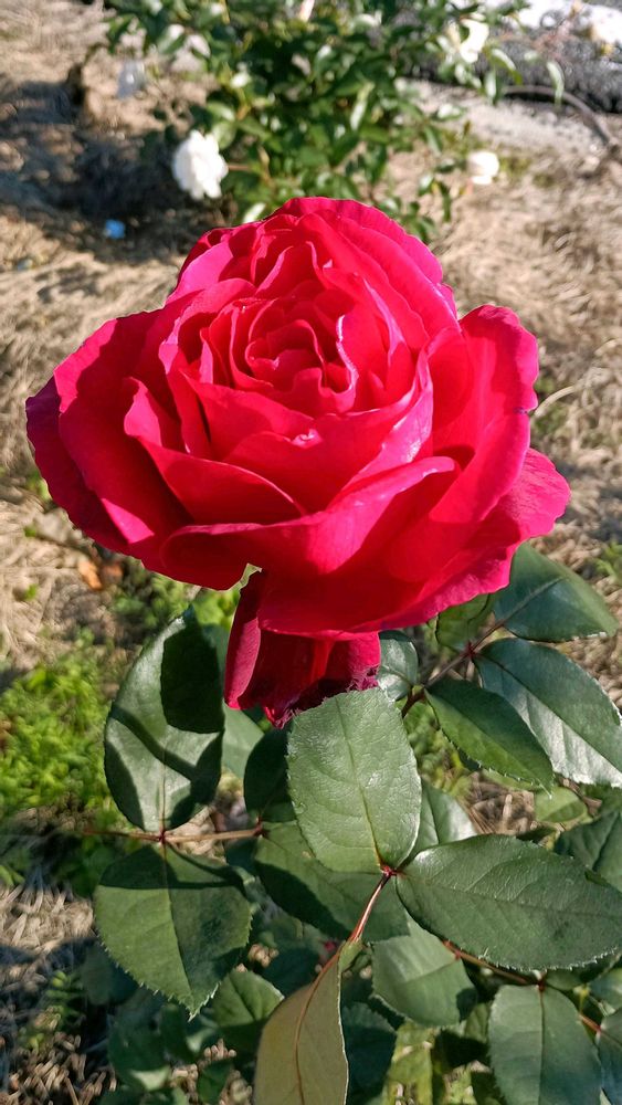 バラらしいしゅっと伸びたシュートの先に、凛とした花を着けている。
