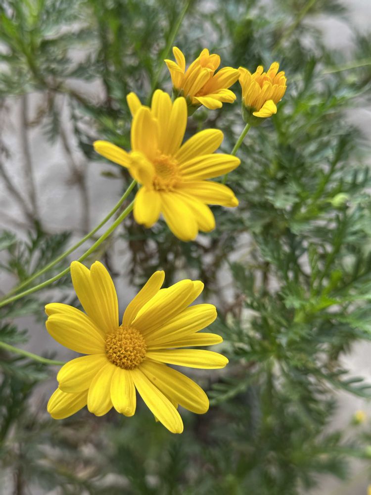 4枚めは、今が盛りと咲くユリオプスデイジーのお花。次々と蕾が上がってきています。