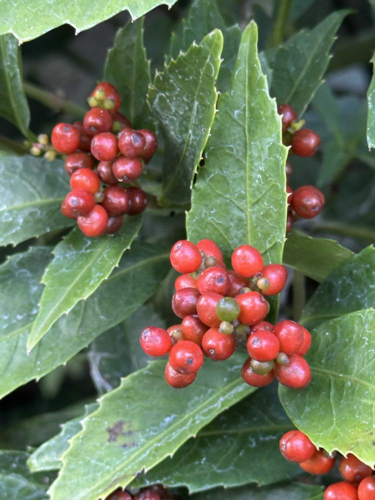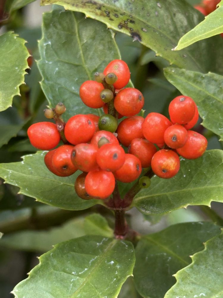 庭の千両が赤くなってきました。