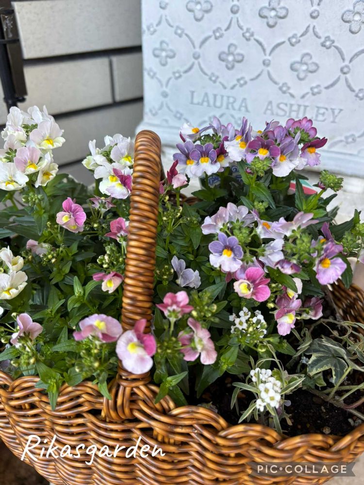 ②香りの芳いネメシアは、洗えるバスケット🧺に植えてみました。