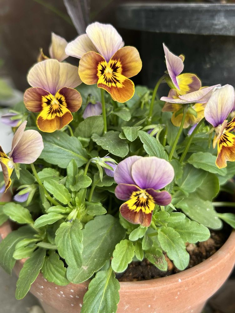 絞りが入るタイプは菌に侵されたのか、品種なのか見分けるのは花🌸5輪以上が全部絞り入りなら大丈夫って事で連れて来てみました。どちらのビオラもタグ🏷️が名前みたいです。去年のファーマーズクラフトはお値段の割に凄く素敵な色が多かったけど、今年はこの子だけでした。う〜ん、生産者さんでもタネからは難しいんですねぇ〜だから有名なビオラはお高いのかな?