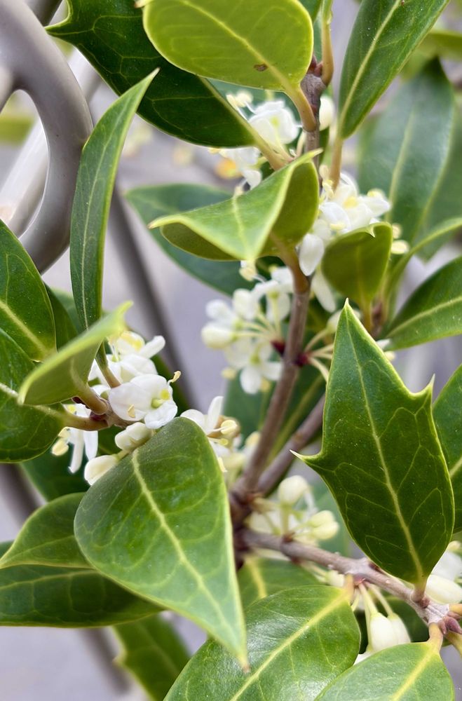 赤い実がなる西洋ヒイラギと違って、とっても清楚なお花です( *´︶`*)