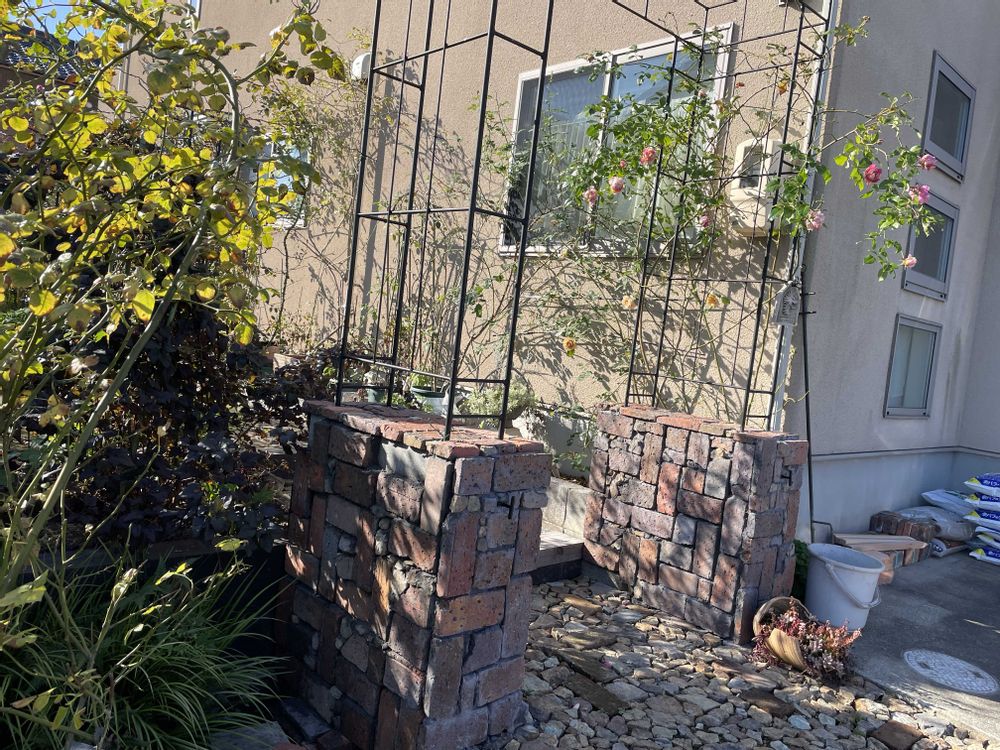④⑤昨日のお休みに、アーチの側面のレンガ貼りをしました