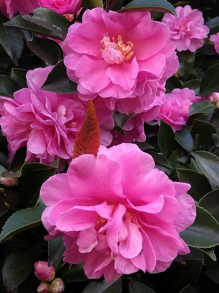 その中でピンクの八重のサザンカがほっこりする様なあたたかさを感じますね💓🎶