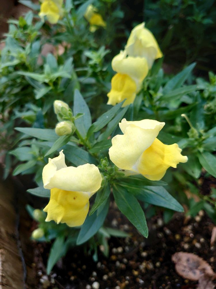 2️⃣キンギョソウ💛明るいレモンイエローね🍋今朝のワンコ散歩🐶🐶🐾花壇のお花💛