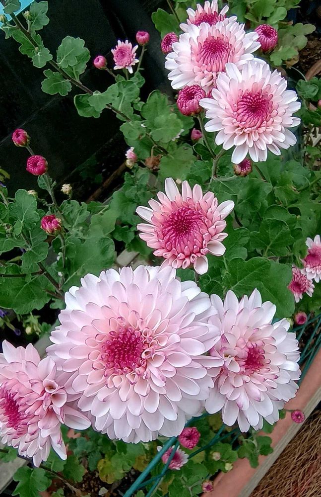 菊は、仏壇の花イメージだったけど、ピンクの菊可愛いですね、中々ピンクは、花屋で見ないな~キンギョソウ、ストックなど植えて、仏壇の花にしています。買ったら高いからね。自分で育てた花の方が買うより心が、こもってると思いませんか?