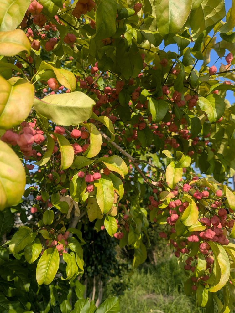 ③山で見るマユミはこれほどたくさんの実をつけているのを見たことがない。
