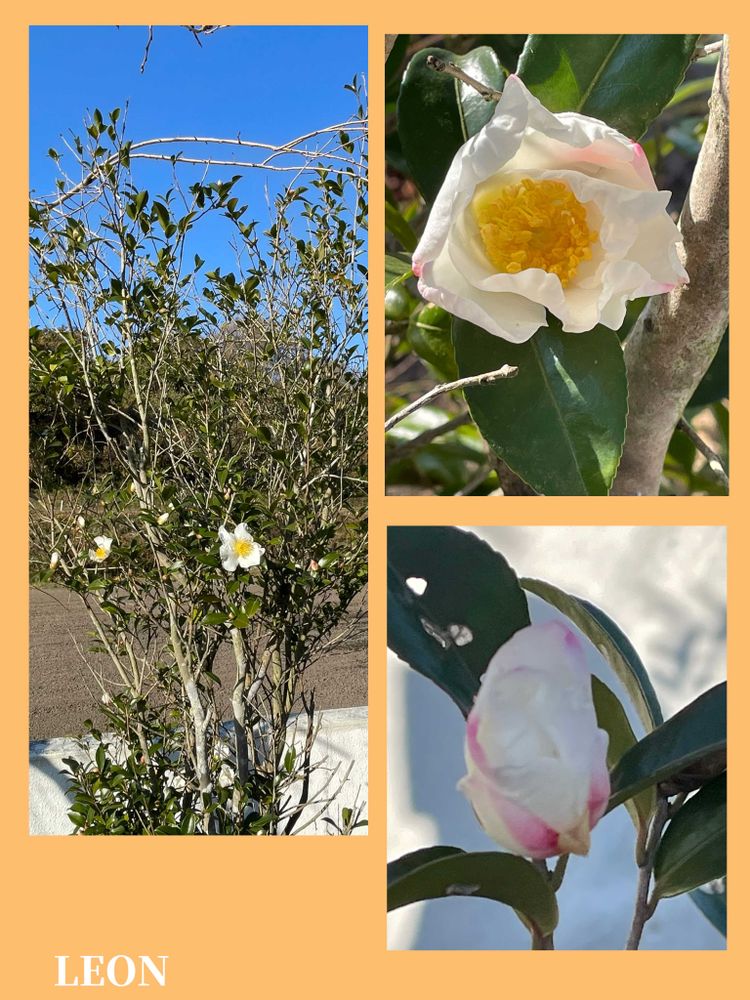 球根のお引っ越しに気を取られている間に、サザンカが咲き始めました🤍💗