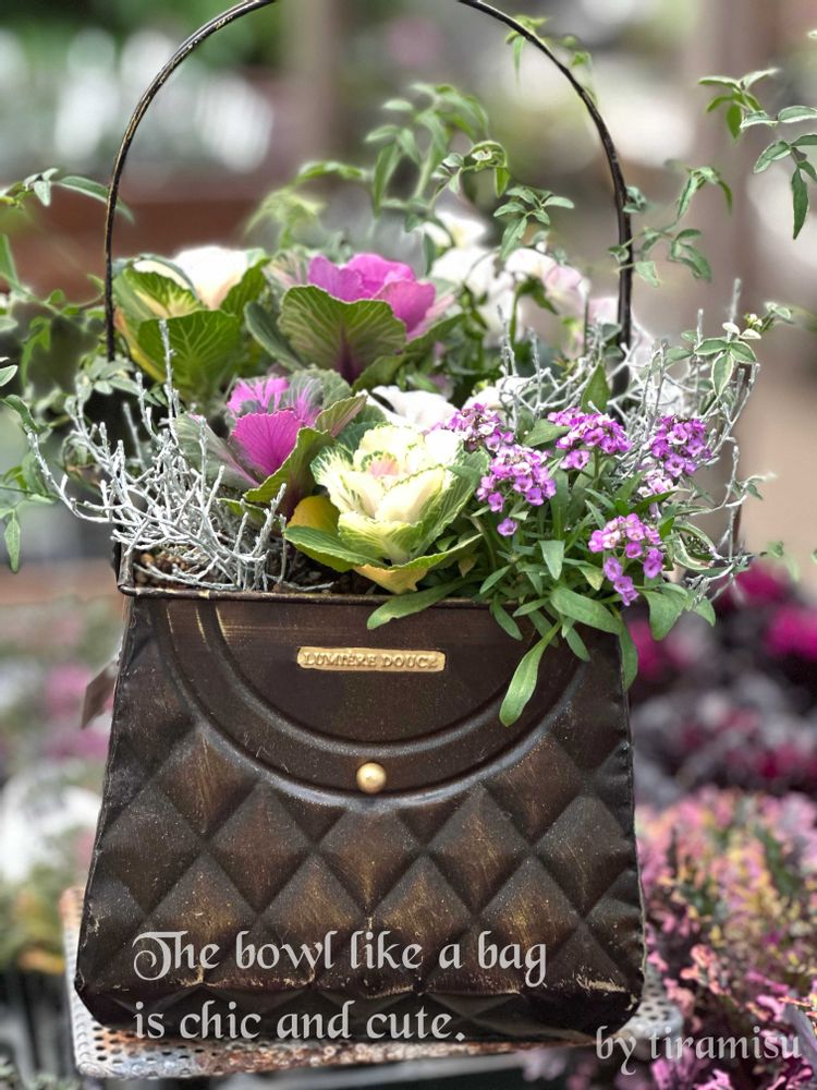 バッグ型のブリキ鉢お洒落ですねぇ✨