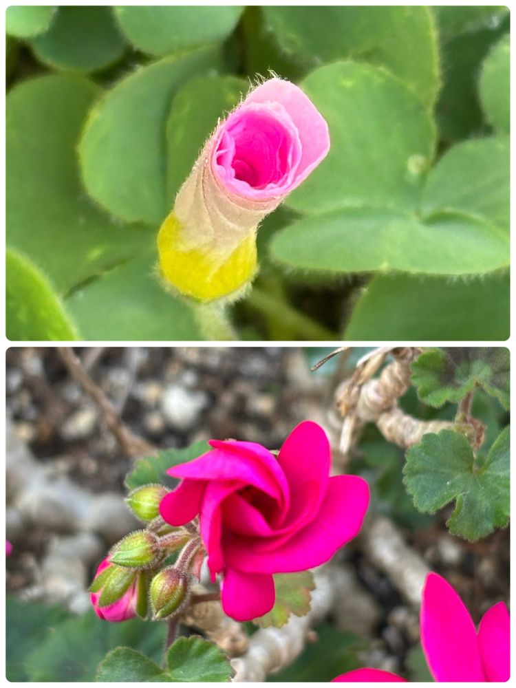 ’オキザリス’とポツリポツリと咲いてくれる’ゼラニウム’の蕾です🌸