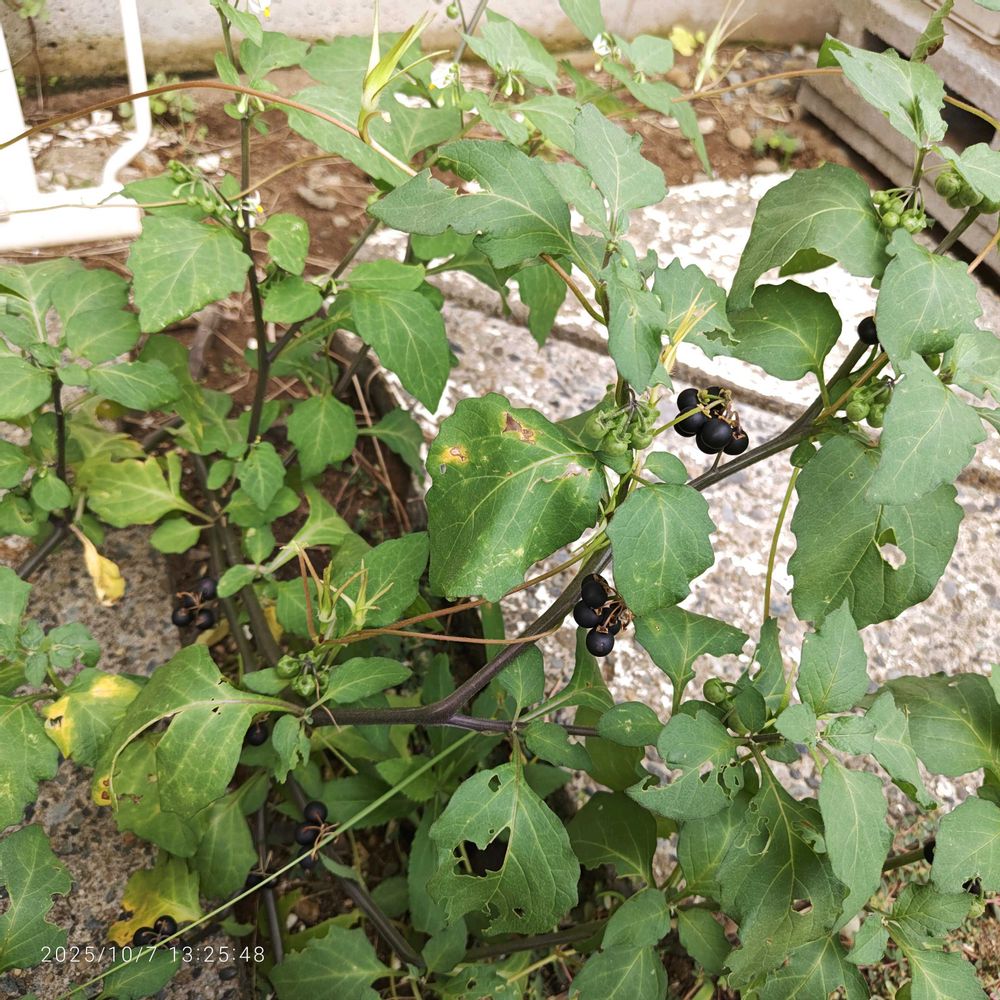 植えた覚えないですが、元気に育ち黒い丸い実があります。これは、バカナス!なんてネーミング