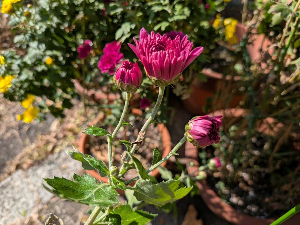 小菊は伸びて広がってしまったので棒で支えて紐でまとめてます💛