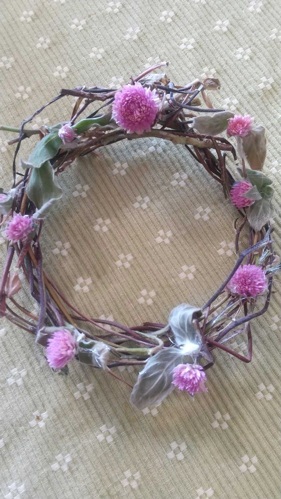 ①枯れた朝顔の蔓と枯れかけた千日紅で
