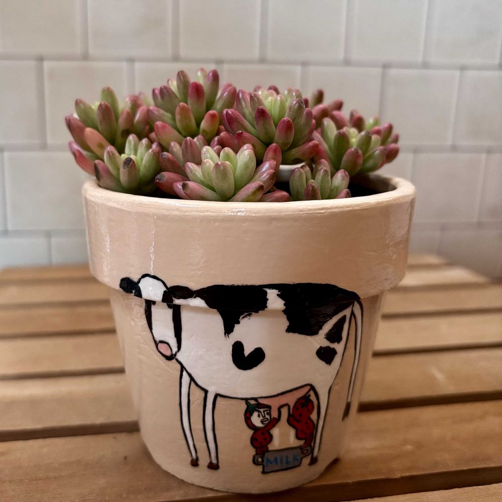 えつこさんの🐮のリメ鉢🖤
