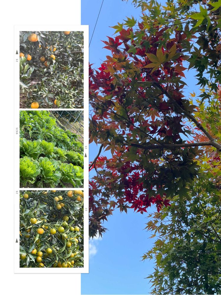 いろはもみじ🍁と義兄の作る野菜とみかん🍊たち。
