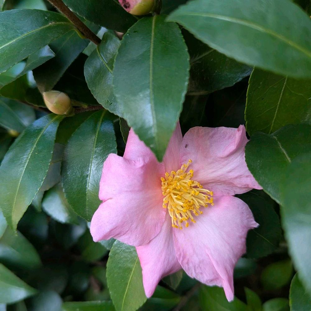 サザンカ咲き始めたんですね。私の散歩道はまだ白だけでピンク🩷は硬いつぼみですよ。💠