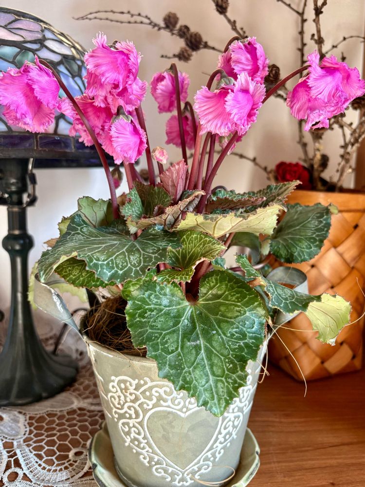 シクラメンのスワン🎄フリフリふわふわな花びらに惹かれました🦢✨玄関が華やかになりました🎀