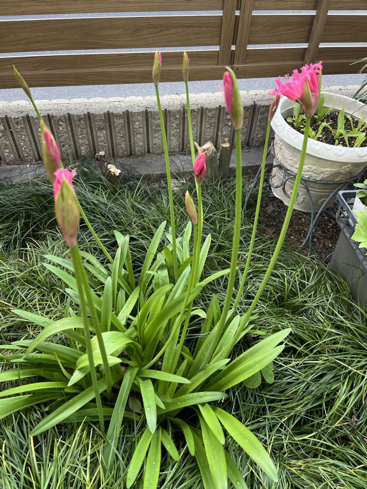サルスベリの下に植えた球根が 毎年大きくて元気なお花を咲かせてくれます🩷🩷🩷