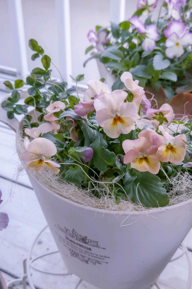 去年、迎えた☘️を小苗に分けてずっと一緒だった金魚草(低苗)咲いてた💛を植えてから折ってしまった😨残念💦💦