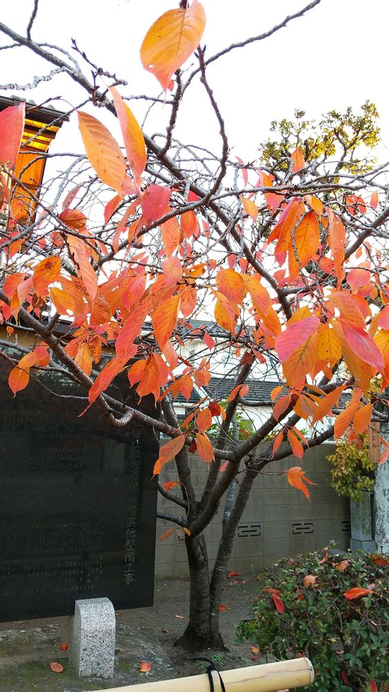 もう11月だと言うのに鬱金桜が綺麗に紅葉してる近くで眺めて1人静かな時を過ごす赤やオレンジ色の葉がとても絶景なその姿そしてあたたかみのある色合い見ていると心もあったまるような色合いです🤭