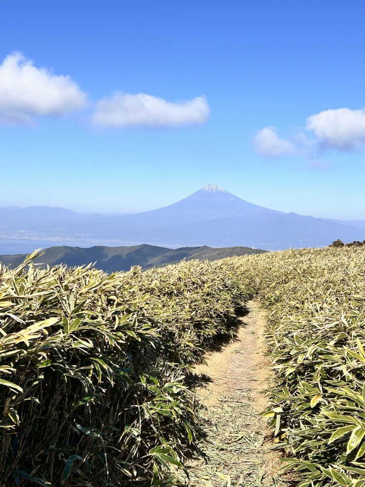 海と富士山が見える気持ちの良い登山道⛰️しかし、今日は風が強く頂上は寒かったです💦