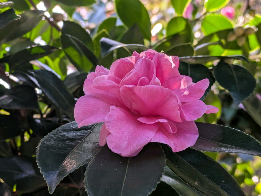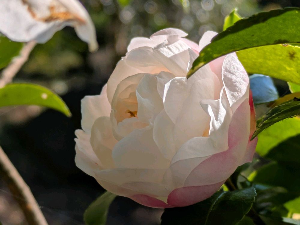 外側が淡いピンクで白のグラデーションのサザンカは「朝倉」とGSで知りました😊