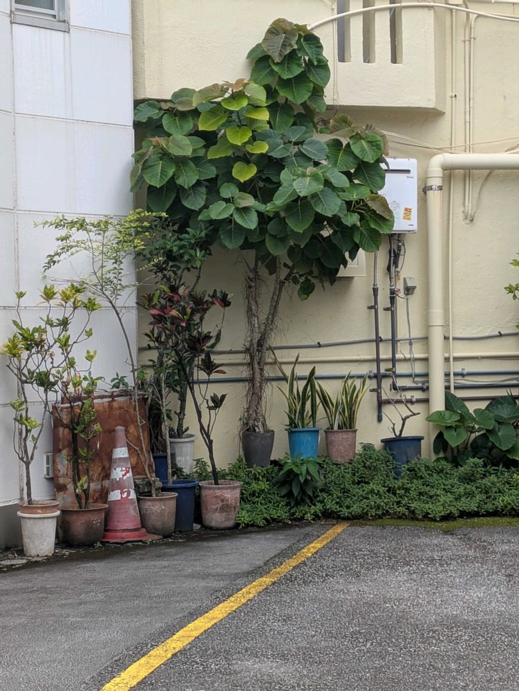なかても、1枚目の鉢植えウンベラータと2枚目のカシワバゴム。