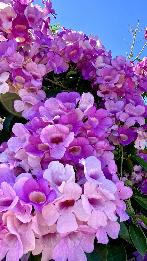 天気も良く…ラッパ状の青紫色の花が青空に映えて綺麗〜💕🥰この時期〜あちらこちらで見かけますね💕👀
