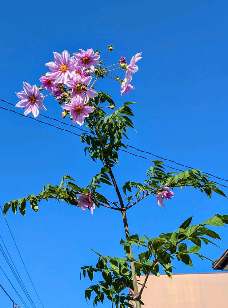 立派に咲いていた皇帝ダリア(キダチダリア)🩷