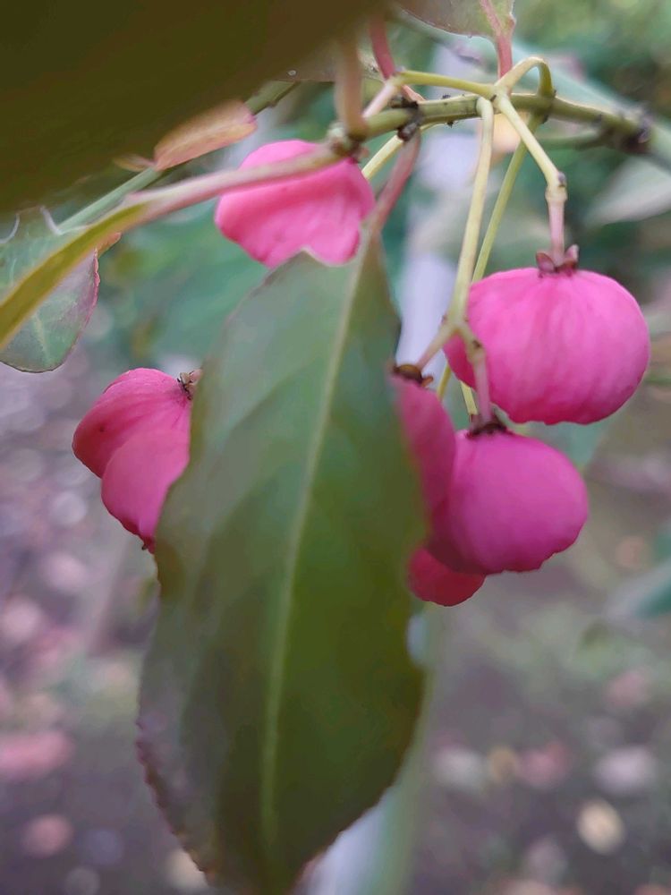 2️⃣〜5️⃣割れる前のマユミの実🩷可愛い色🩷なぜかピントが合いにくい😅