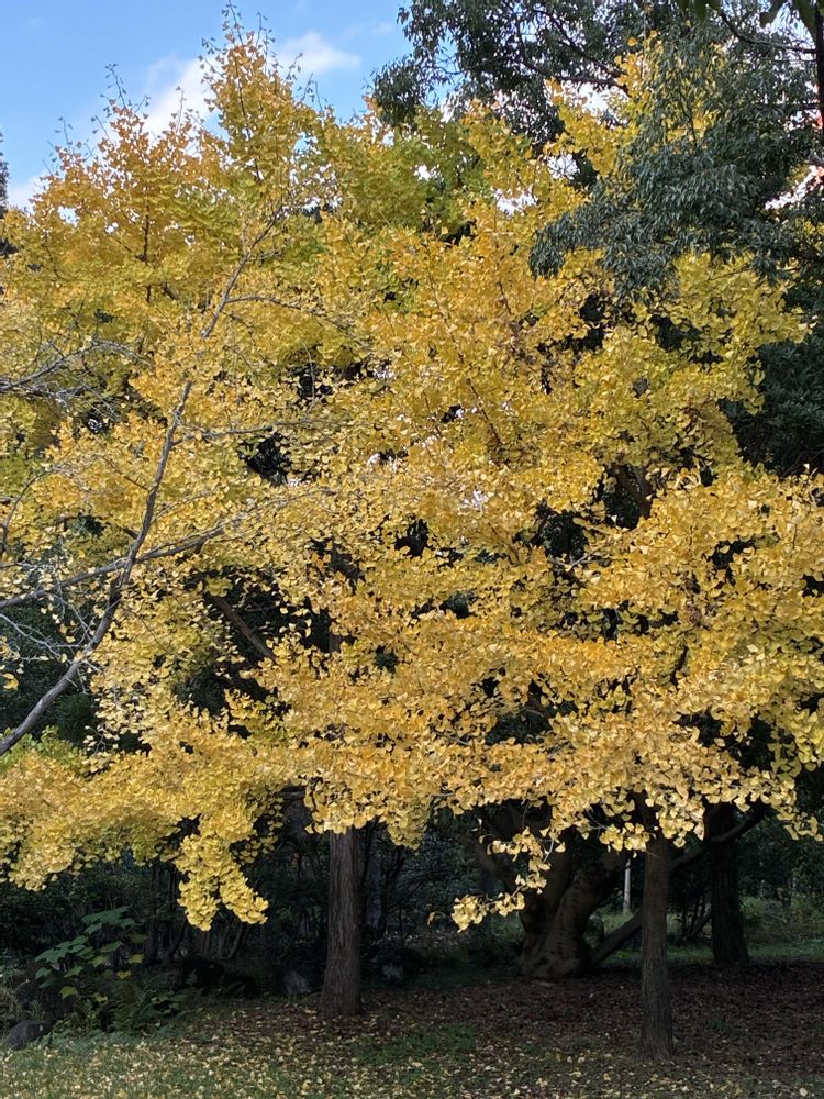 モミジ狩り、赤いモミジも美しいけど、黄金色のイチョウも美しいよね。地域の公園のイチョウです。