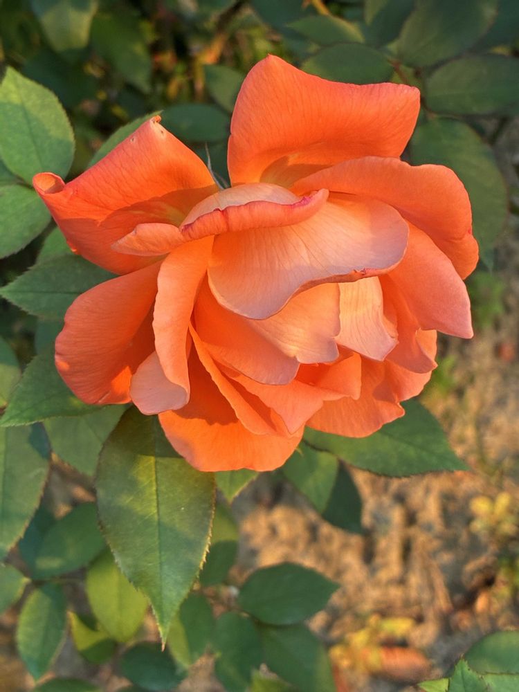 夕暮れ時、万博公園のバラ園にて日本🇯🇵製のバラ「伏見」をパチリ!📸🧡❤️🌿🤗😄🌇👌