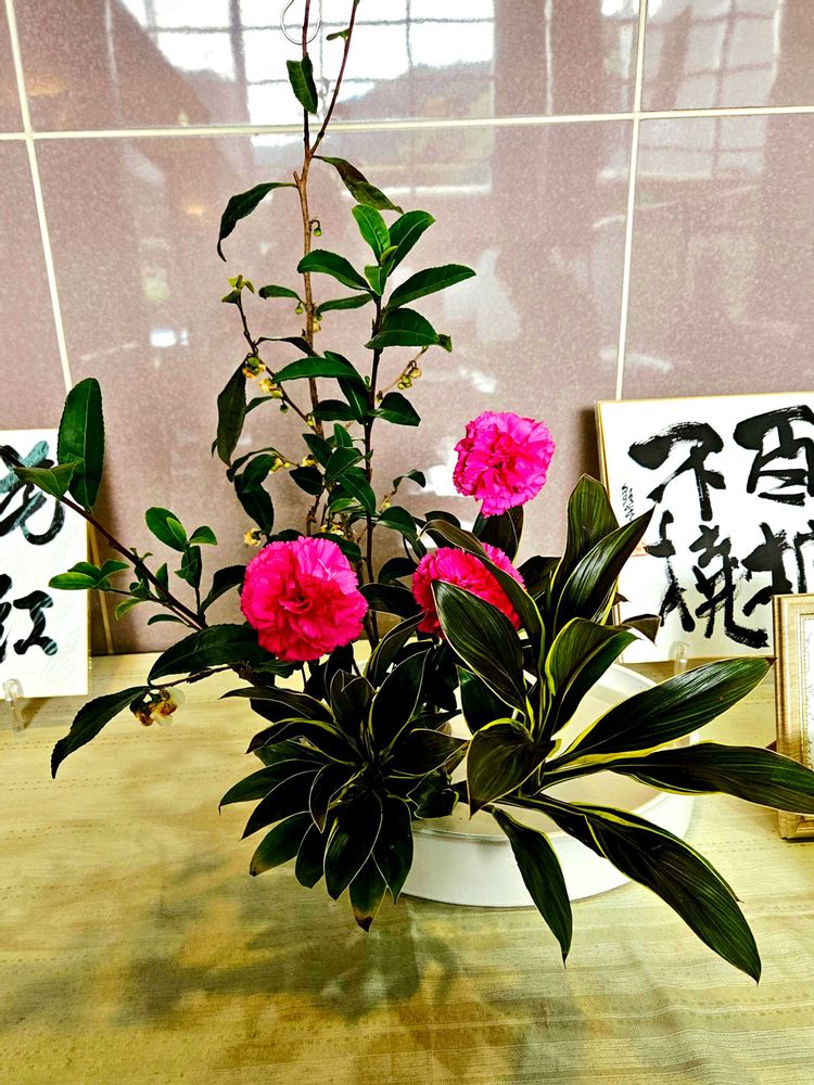1️⃣待合室に生け花が♡カーネーションとコリジリネ、茶ノ木