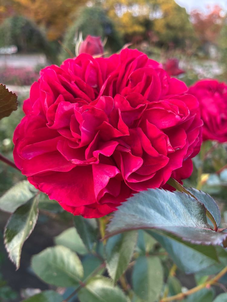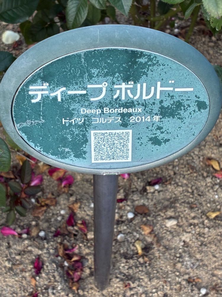 万博公園のバラ園にて、ドイツ🇩🇪製のバラ「ディープ ボルドー」をパチリ!📸🌹🌿😄🤗🌞✌️