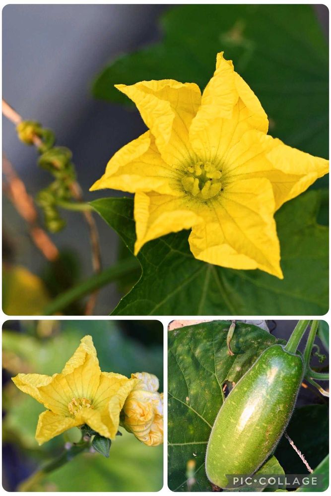 ③冬瓜の花と実を初めて見ました。民家の壁を覆う様に😳