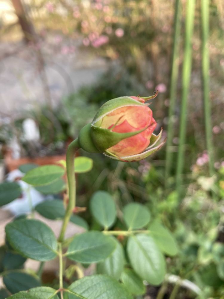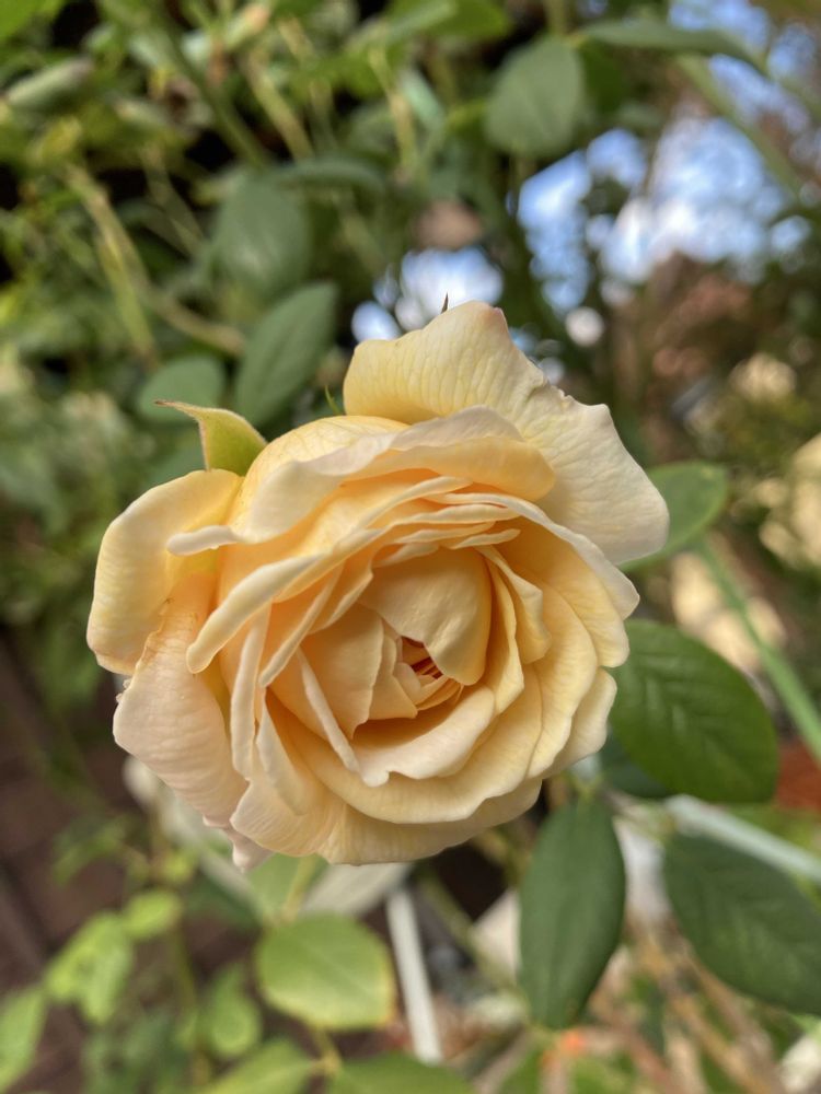 秋薔薇は、クリーム色が濃く咲いています。蕾を見たら、オレンジ色🧡に見えますね!