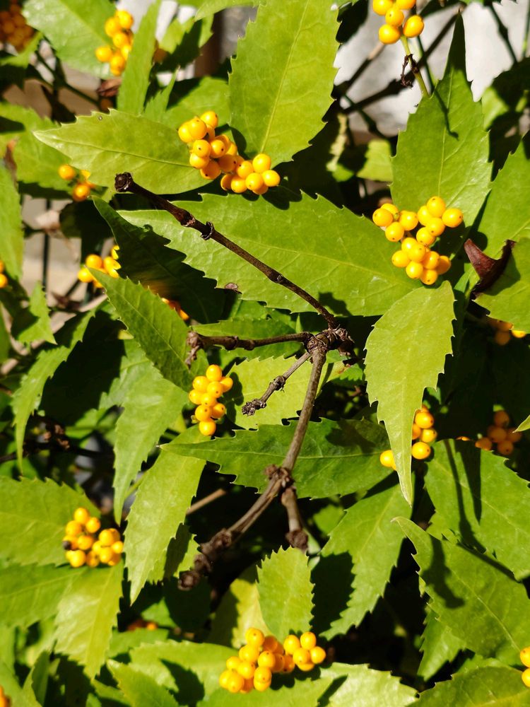 黄色い千両、父が買ってきて植えたものですが、赤色のよりも大きくなりました。