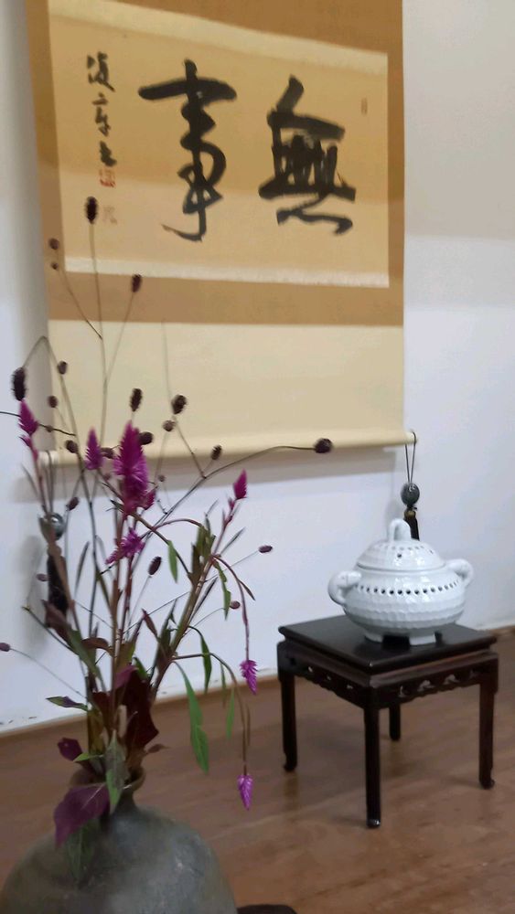 このゆっくり自分と向き合う時間と、住職の奥様が生けられる花の世界も好き💐