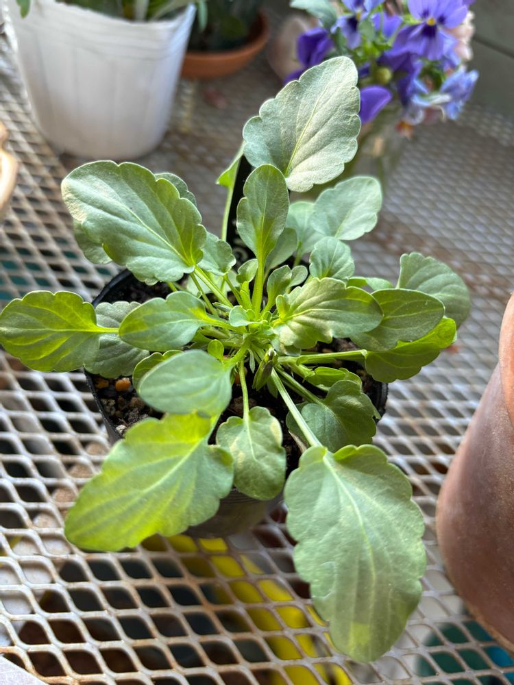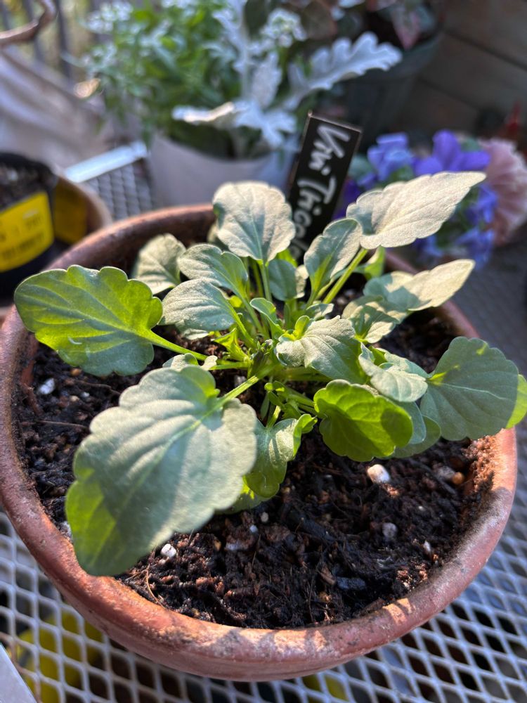 種からビオラの一つ、ポットから溢れてきたので、ひとまわり大きな鉢へ。